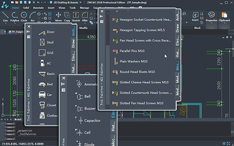 블록, 외부참조, 레이어 등 콘텐츠를 한 곳에서 관리하고 손쉽게 삽입할 수 있습니다.